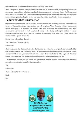 Object Orientated Development Repeat Assignment 2018i Items