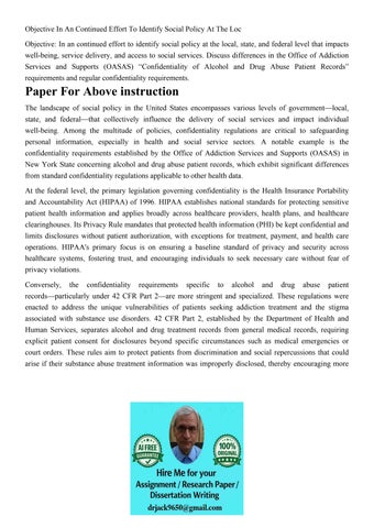 Objective In An Continued Effort To Identify Social Policy A