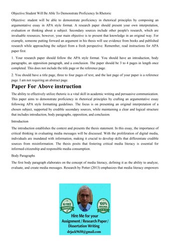 Objective Student Will Be Able To Demonstrate Proficiency In