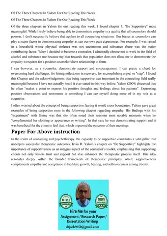 Of The Three Chapters In Yalom For Our Reading This Week Of