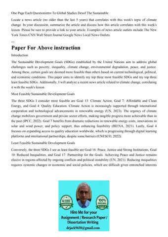 One Page Each Questionintro To Global Studies Desof The Sust