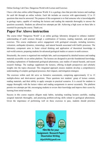 Online Geology Lab Class: Dangerous World with Lecture and E