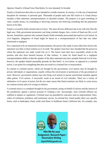Opinion 1fraud Is A Broad Term That Refers To Acts Intended