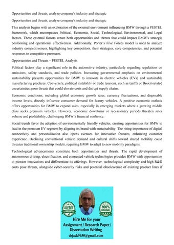 Opportunities and threats; analyze company's industry and st