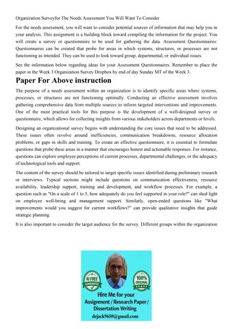 Organization Surveyfor The Needs Assessment You Will Want To