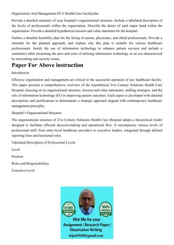 Organization And Management Of A Health Care Facilitydue Pro