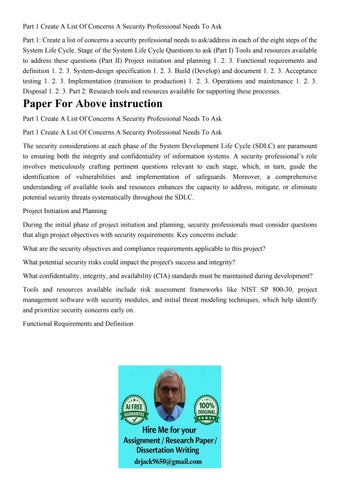 Part 1 Create A List Of Concerns A Security Professional Nee