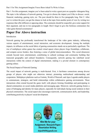 Part 1 For This Assignment Imagine Youve Been Asked To Write