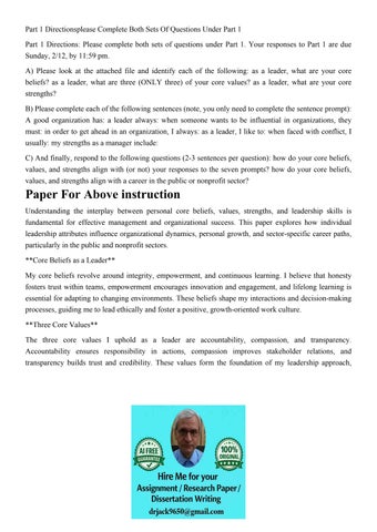 Part 1 Directionsplease Complete Both Sets Of Questions Unde