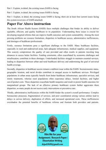 Part 1: Explain, in detail, the existing issues SAHS is faci
