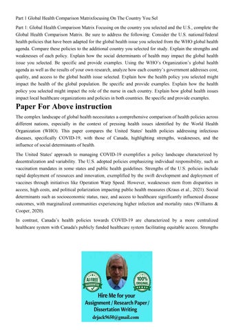 Part 1 Global Health Comparison Matrixfocusing On The Countr