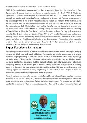 Part 1 Doesan Individualsmembership In A Diverse Population