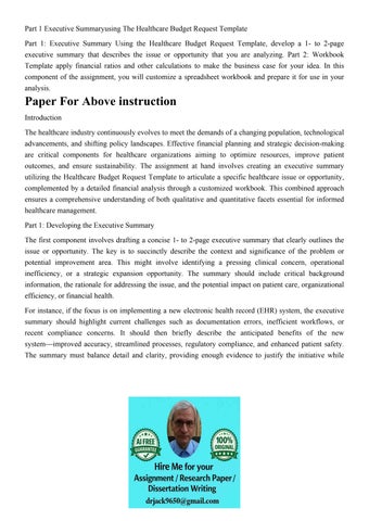 Part 1 Executive Summaryusing The Healthcare Budget Request