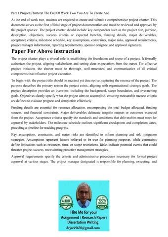 Part 1 Project Charterat The End Of Week Two You Are To Crea