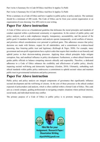 Part 1write A Summary On A Code Of Ethics And How It Applies