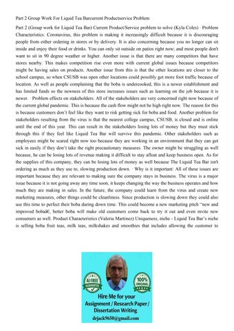 Part 2 Group Work For Liquid Tea Barcurrent Productservice P