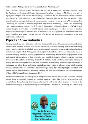 Part 2 Section 1 Writing Sample The Connection Between Acade