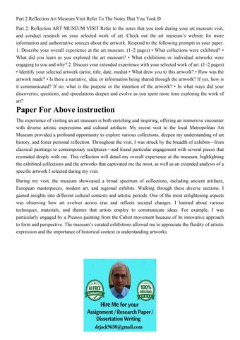 Part 2 Reflection Art Museum Visit Refer To The Notes That Y