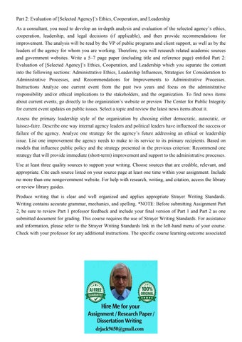 Part 2: Evaluation of [Selected Agency]’s Ethics, Cooperatio
