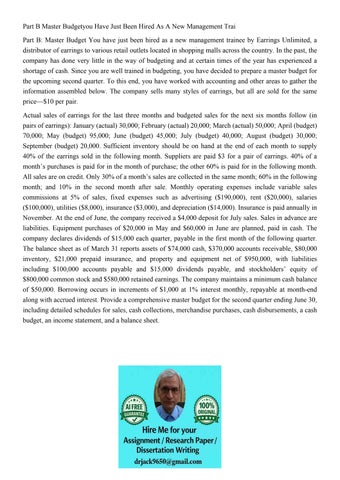 Part B Master Budgetyou Have Just Been Hired As A New Manage