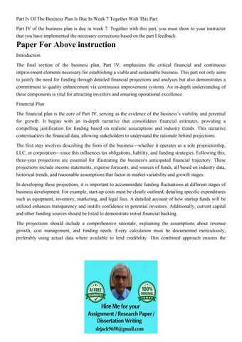 Part Iv Of The Business Plan Is Due In Week 7 Together With