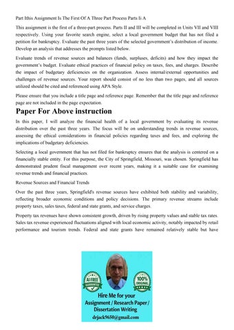 Part Ithis Assignment Is The First Of A Three Part Process P