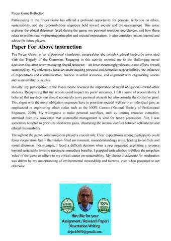 Pisces Game Reflection Participating in the Pisces Game has