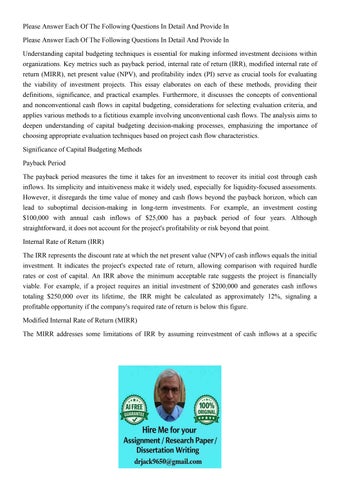 Please Answer Each Of The Following Questions In Detail And