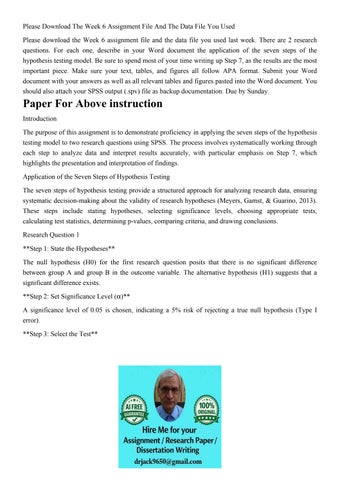 Please Download The Week 6 Assignment File And The Data File