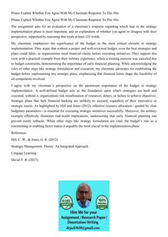 Please Explain Whether You Agree With My Classmate Response