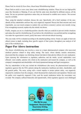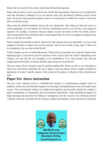 Please Find An Article Or News Story About Some Whistle Blow