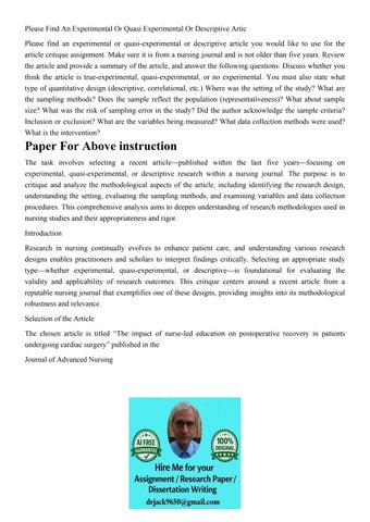 Please Find An Experimental Or Quasi Experimental Or Descrip