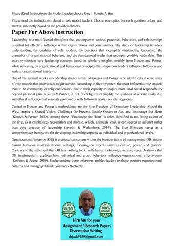 Please Read Instructionsrole Model Leaderschoose One 1 Point