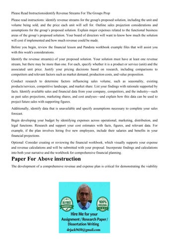 Please Read Instructionsidentify Revenue Streams For The Gro