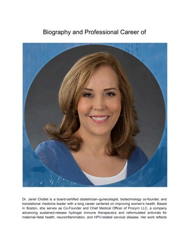 Dr. Janet Chollet has forged a career at the intersection of clinical medicine, translational research, and therapeutic innovation, bringing decades of experience to her work as a board-certified obstetrician–gynecologist and biotech co-founder. As Chief Medical Officer of Procyrn LLC, she guides the development of sustained-release biologics and reformulated antivirals designed to address unmet needs in maternal–fetal health, neuroinflammation, and HPV-related cervical disease. Her approach reflects a steady focus on practical, science-driven solutions that support patient well-being. Over more than thirty years in academic and clinical practice, she has contributed to women’s health through research, teaching, and direct patient care at institutions such as Beth Israel Deaconess Medical Center and the University of Pittsburgh. She holds three U.S. patents in drug-delivery technologies and has played key roles in advancing multiple early-stage therapeutic programs. Her work demonstrates how frontline clinical experience can inform the development of targeted treatments compatible with real-world medical settings. Her academic foundation includes a Bachelor of Science in Neuroscience from the University of California, Santa Barbara, followed by a medical degree from New York Medical College. She completed her Obstetrics and Gynecology residency at LAC/USC Women’s Hospital, where comprehensive training shaped her enduring interest in therapies that support women, children, and families through complex health challenges.