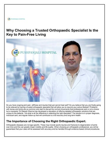 Dr. Rakesh Sharma provides focused orthopaedic treatment at Pushpanjali Hospital, addressing bone, joint, and spine conditions with practical care plans. His services include fracture management, arthritis treatment, sports injury care, and joint pain evaluation. Each consultation involves careful diagnosis and clear discussion of treatment options, including both non surgical and surgical approaches when required. Supported by modern facilities and organized patient services, care remains structured and efficient. With attention to recovery and mobility improvement, Dr. Rakesh Sharma works to help patients regain strength and return to daily activities with confidence.