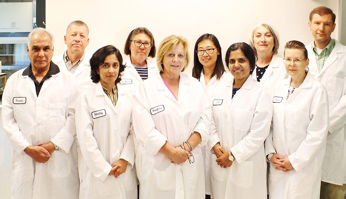 La Dra. Aleksandra Niedzwiecki (centro) directora del Instituto de Investigación Dr. Rath en San José, California, rodeada por el equipo de investigadores.