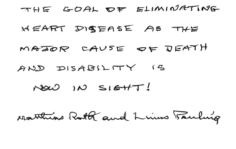 Sulla base di queste scoperte, il Dr. Pauling e il Dr. Rath hanno lanciato un “Appello a un impegno scientifico internazionale per abolire le malattie cardiache”. Questo appello sarà l’ultimo del due volte Nobel e si conclude così: