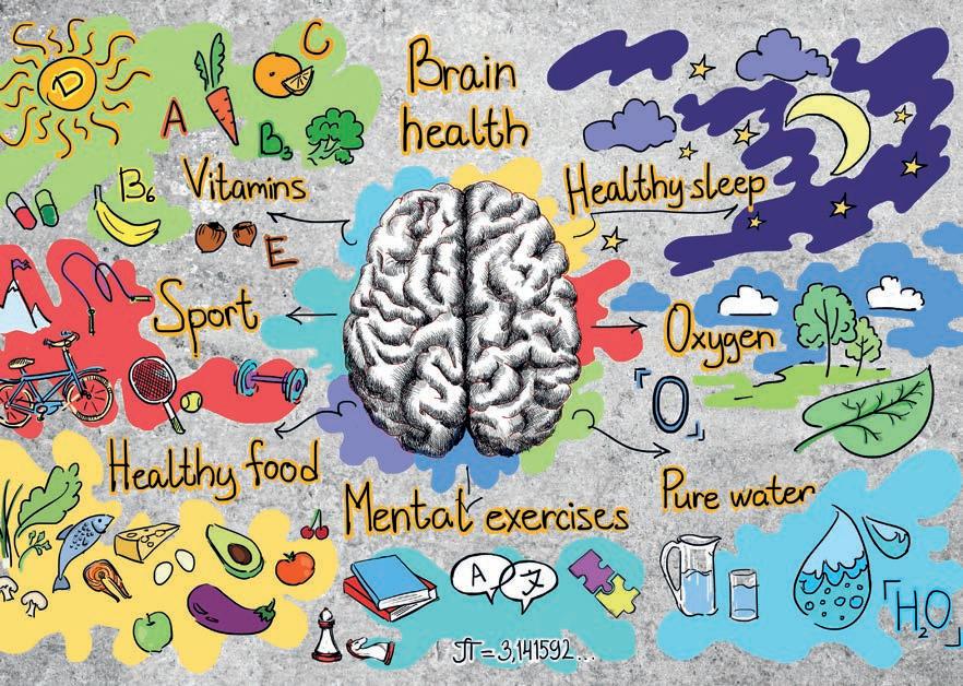 energia, ossigeno e nutrienti. Quasi il 60% del tessuto cerebrale è costituito da grasso, contiene molta acqua ed è il maggior consumatore di vitamina C. Questa vitamina è vitale per tutte le funzioni del cervello e le sue concentrazioni superano di gran lunga quelle del resto del corpo. Ciò sottolinea l’importanza di un regolare apporto