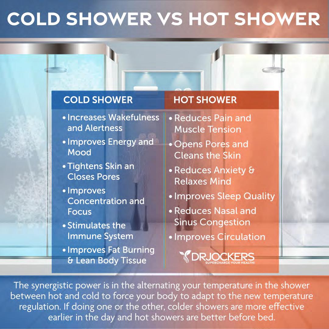 I recommend combining hot and cold therapy. You may want to sit in a sauna then take a cold shower or jump into the pool. An even simpler way is finishing up your warm shower with a cold shower (58, 59, 60, 61).