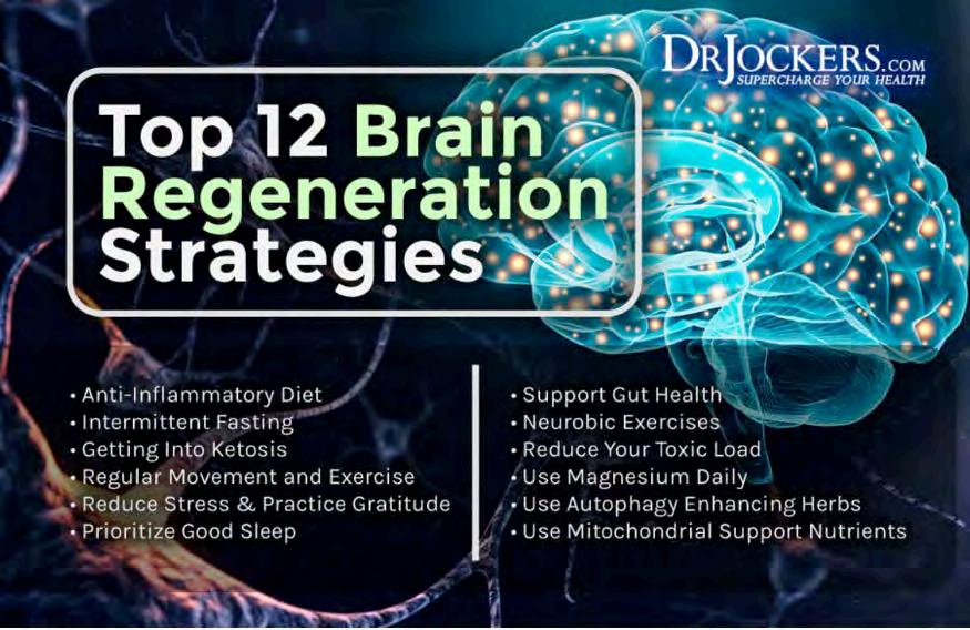 Brain regeneration can be enhanced with the use of hyperbaric oxygen therapy on a regular basis. To learn more about hyperbaric oxygen therapy, I recommend reading this article (74, 75, 76, 77, 78).