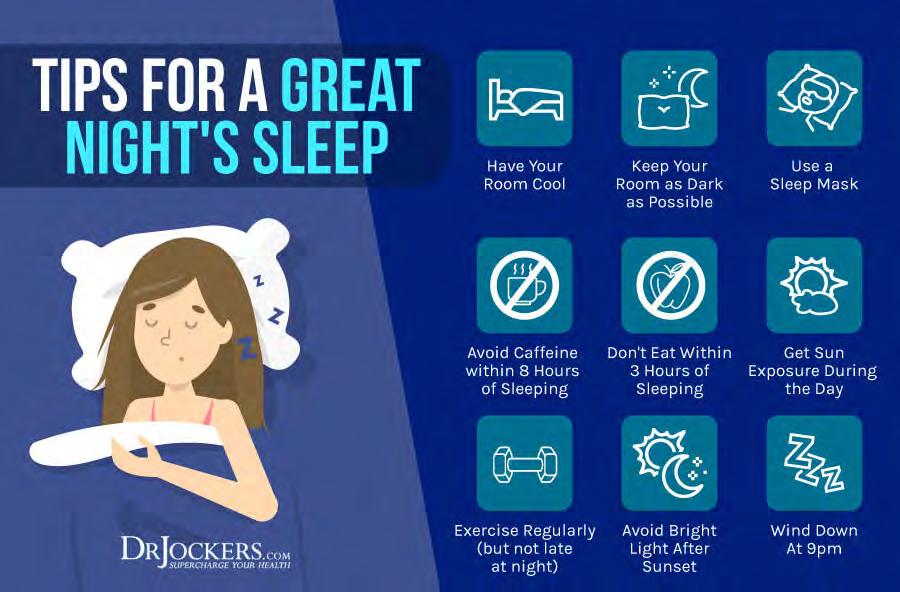 Prioritizing good-quality sleep is critical for your brain regeneration and mental health. It is essential for rest, repair, and cellular rejuvenation. Develop a regular nighttime routine that relaxes your body before sleep and works for you. Avoid sugar and caffeine throughout the day, especially in the evening.
