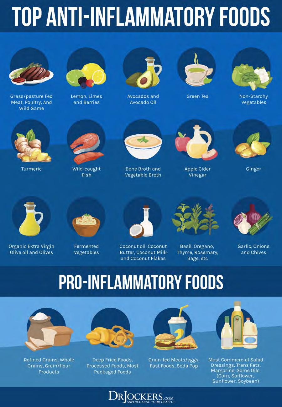 Eating an anti-inflammatory diet rich in nutrient-dense foods is critical for your brain health. Begin by removing all inflammatory foods, including refined sugar, gluten, refined oils, deepfried and processed foods, conventional dairy, grain-fed meat and eggs, soda and sugary drinks, and foods that you are sensitive to.