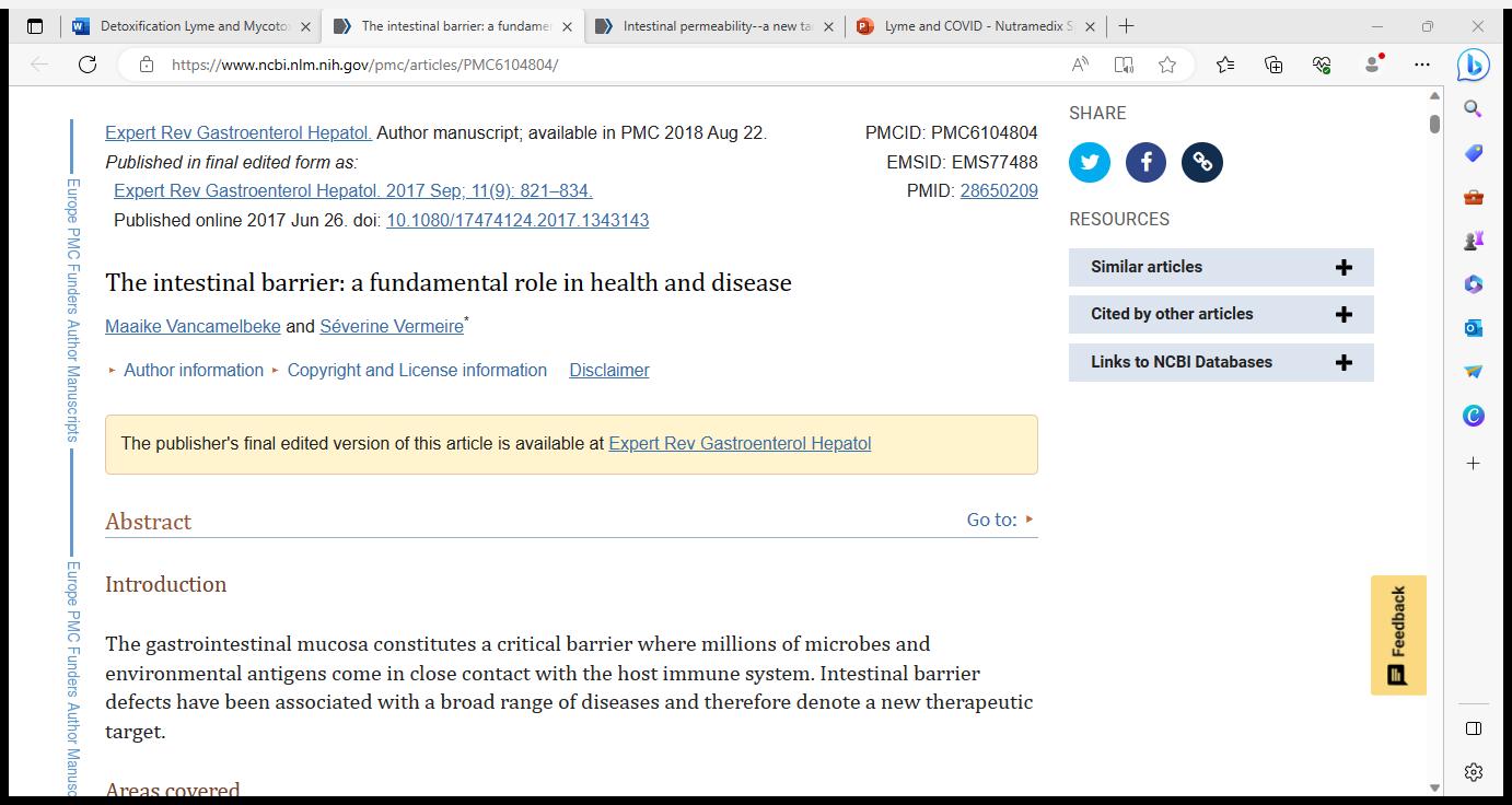 • Lyme-induced cytokines break down tight junctions in the gut and increase permeability.