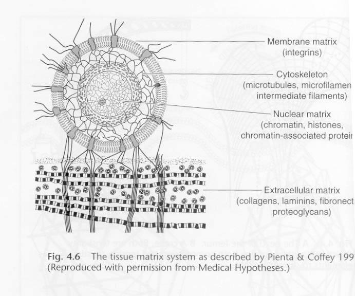 electrical activity, resulting in very rapid responses in the tissues. The graphic below shows what these semirigid cellular matrix structures are.