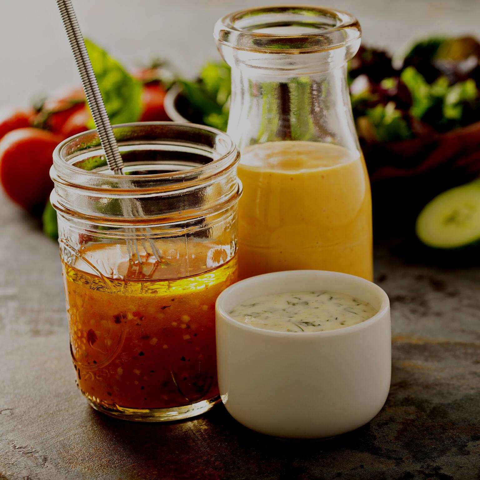 Make a simple dressing, use high-quality organic olive oil and mix in any kind of vinegar with mustard, dried or fresh herbs, salt and pepper, spices, and lemon juice