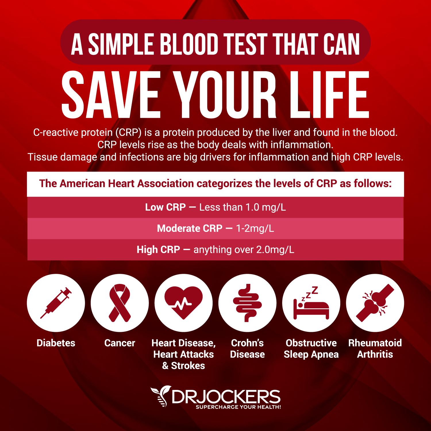 The C-Reactive Protein or CRP test is a key test I recommend. It measures a protein (CRP) produced in your liver that indicates inflammation levels in your body. A 2013 study published inRheumatology has found that increased levels of CRP may be associated with muscle strength weakness in knee arthritis (5)