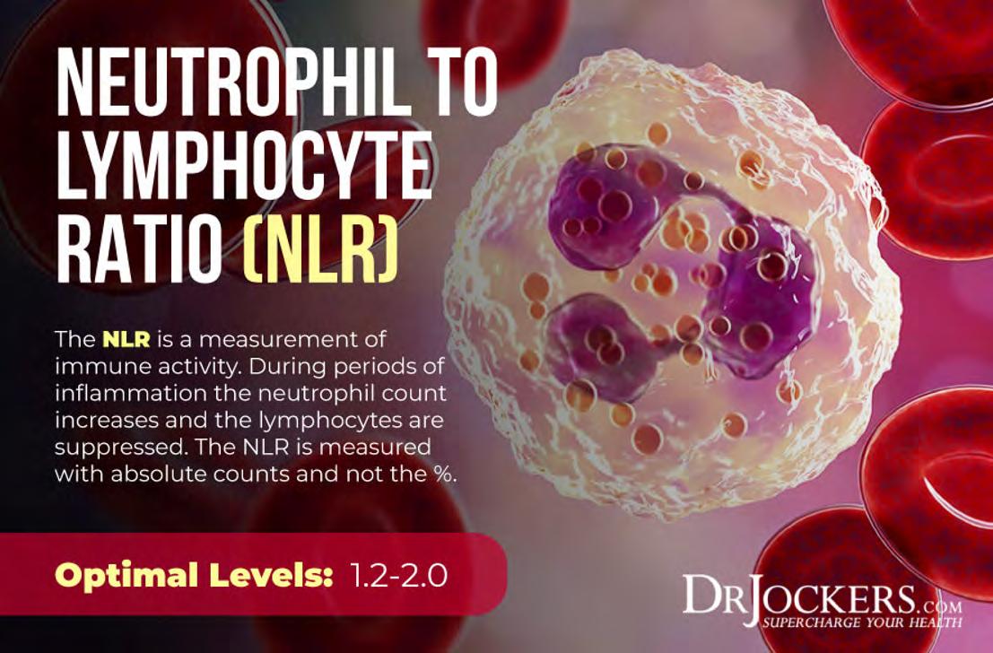 When the body is dealing with chronic inflammation, over time, the lymphocyte levels will drop and the neutrophil levels will rise and cause an imbalance. NLR is usually measured with the absolute count and we want to see it at roughly 1.2-2.0. If you see that the number of neutrophils are more than twice the amount of lymphocytes it is a sign of chronic inflammation
