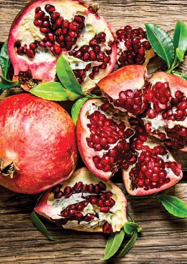 This sweet/tart fruit has numerous health benefits. Pomegranates offer punicalagin, a powerful antioxidant unique to that fruit. It, along with the pomegranate’s other phytochemicals, have anti-inflammatory and anti-cancer effects. Pomegranate helps to reduce oxidation of (bad) LDL cholesterol (which impedes the build-up of coronary artery plaque) and reduce blood pressure.24-26
