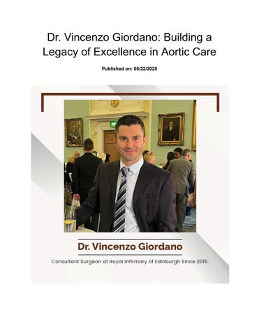 Dr. Vincenzo Giordano is a Consultant Cardiothoracic Surgeon specializing in aortic surgery at NHS Lothian Royal Infirmary in Edinburgh, Scotland. Since 2018, he has led the National Service of Complex Aortic Surgery in Scotland, bringing his deep expertise to the medical and surgical management of aortic conditions. Dr. Giordano's career began in 2011 when he moved to the UK and joined the Department of Cardiothoracic Surgery at Aberdeen Royal Infirmary. There, he participated in various complex adult cardiothoracic procedures, which helped him develop expertise in managing critically ill patients. He also earned the Fundamental Critical Care Support Course (FCCS) certification. In 2012, he moved to the Royal Infirmary of Edinburgh as a Specialty Doctor, where he gained further experience in elective and emergency surgeries while also pursuing research in cardiac and aortic surgery. During this time, he also developed his skills in mentoring and participated in multi-disciplinary meetings focused on mortality and morbidity. In 2015, Dr. Vincenzo became a Locum Consultant at the Royal Infirmary, where he began performing surgeries independently. His work included a wide range of procedures, including minimally invasive techniques. By 2017, he secured a permanent Consultant position and has performed more than 1900 cardiac and aortic surgeries. His work includes complex procedures such as total arterial myocardial revascularisation, ECMO implantation, and aortic valve repair. He is also involved with the Scottish National Thoraco-Abdominal Aortic Aneurysm and Complex Aortic Service, which provides specialized care for patients with aortic conditions. Dr. Giordano significantly contributed to the field in 2020 by developing a port-access approach for aortic valve replacement using a mini right anterior thoracotomy, making his center the first in Scotland to use this technique.